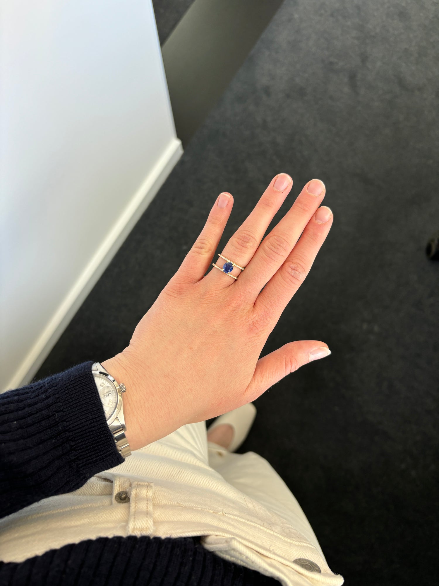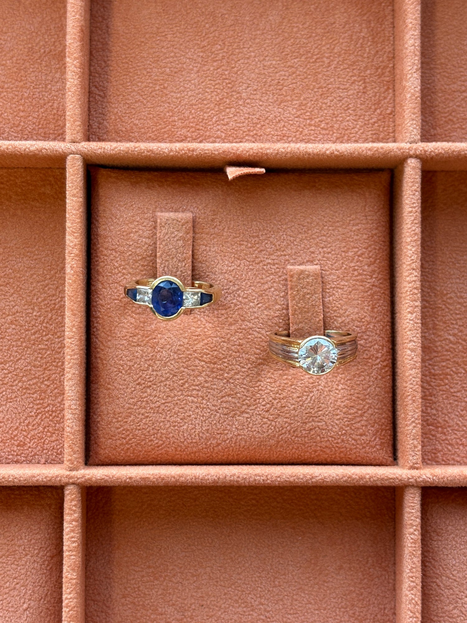Our lovely client came to us with two rings she no longer wore. We carefully removed the stones, re-cut the oval sapphire for optimal brilliance and turned them into three timeless Edès pieces. A fresh start for her cherished gems, crafted for elegance.