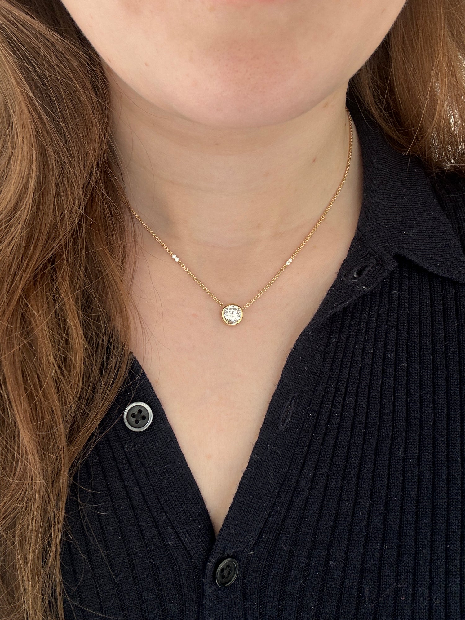 This bespoke necklace features a 1.66ct natural white diamond accompanied by Edès' signature small natural diamonds on the 18ct gold chain.